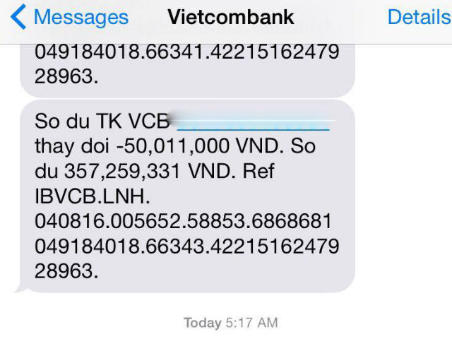 Các đối tượng lừa đảo đã chuyển tiền trong khoảng account khách hàng đến phổ thông account trung gian tại 3 nhà băng khác biệt tại vn. Sau đó, đối tượng lường đảo đã rút 200 triệu đồng qua ATM ở Malaysia. Nhà băng Vietcombank đã xử lý các biện pháp khẩn cấp, kịp thời khoanh giữ lại được 300 triệu tiền việt. Đây là các giao chuyển dịch khoản sang nhà băng khác, chưa kịp chuyển ra khỏi hệ thống Vietcombank.